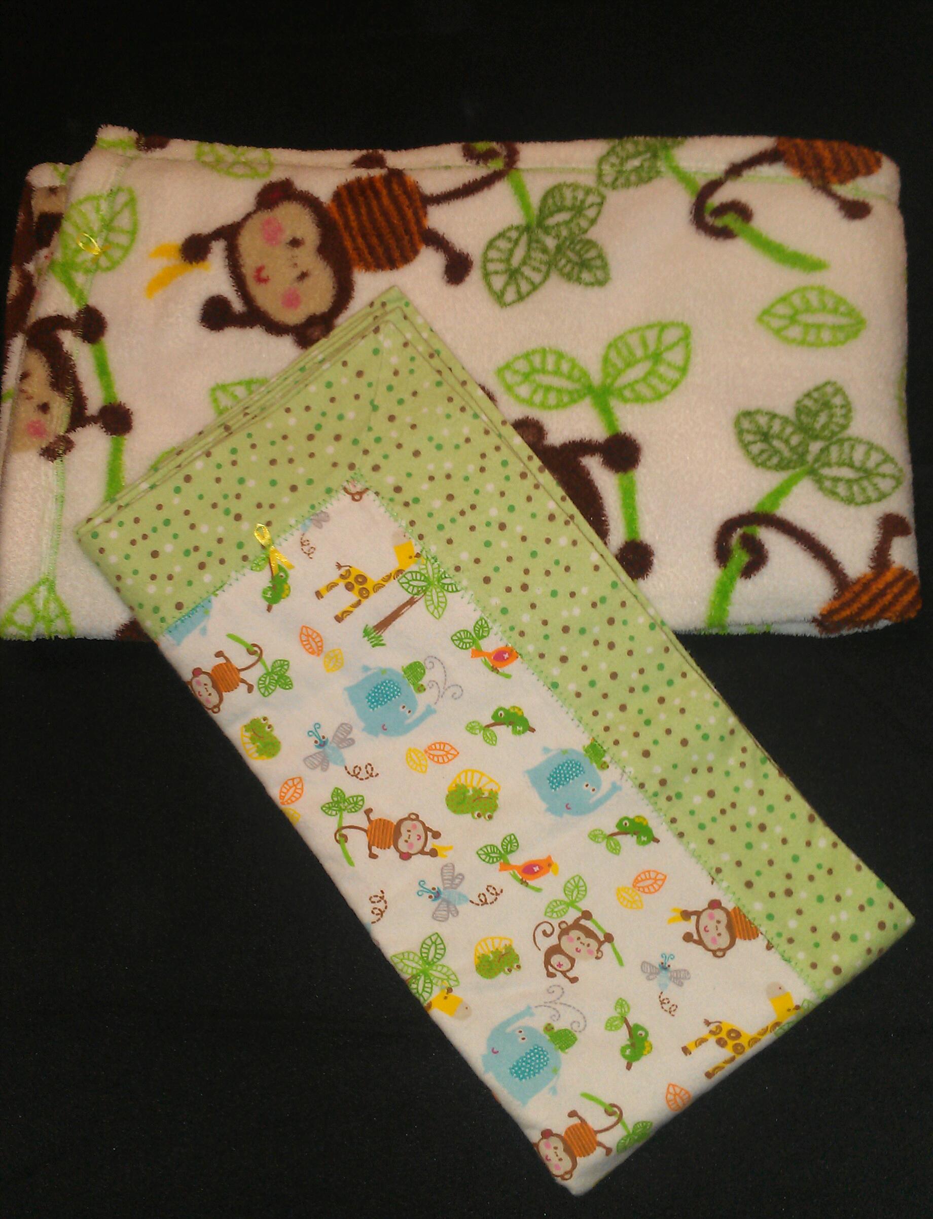 Save when buying Swingin Monkey blankets as a set. Includes one double layer flannel receiving blanket and one UltraCuddle blanket.